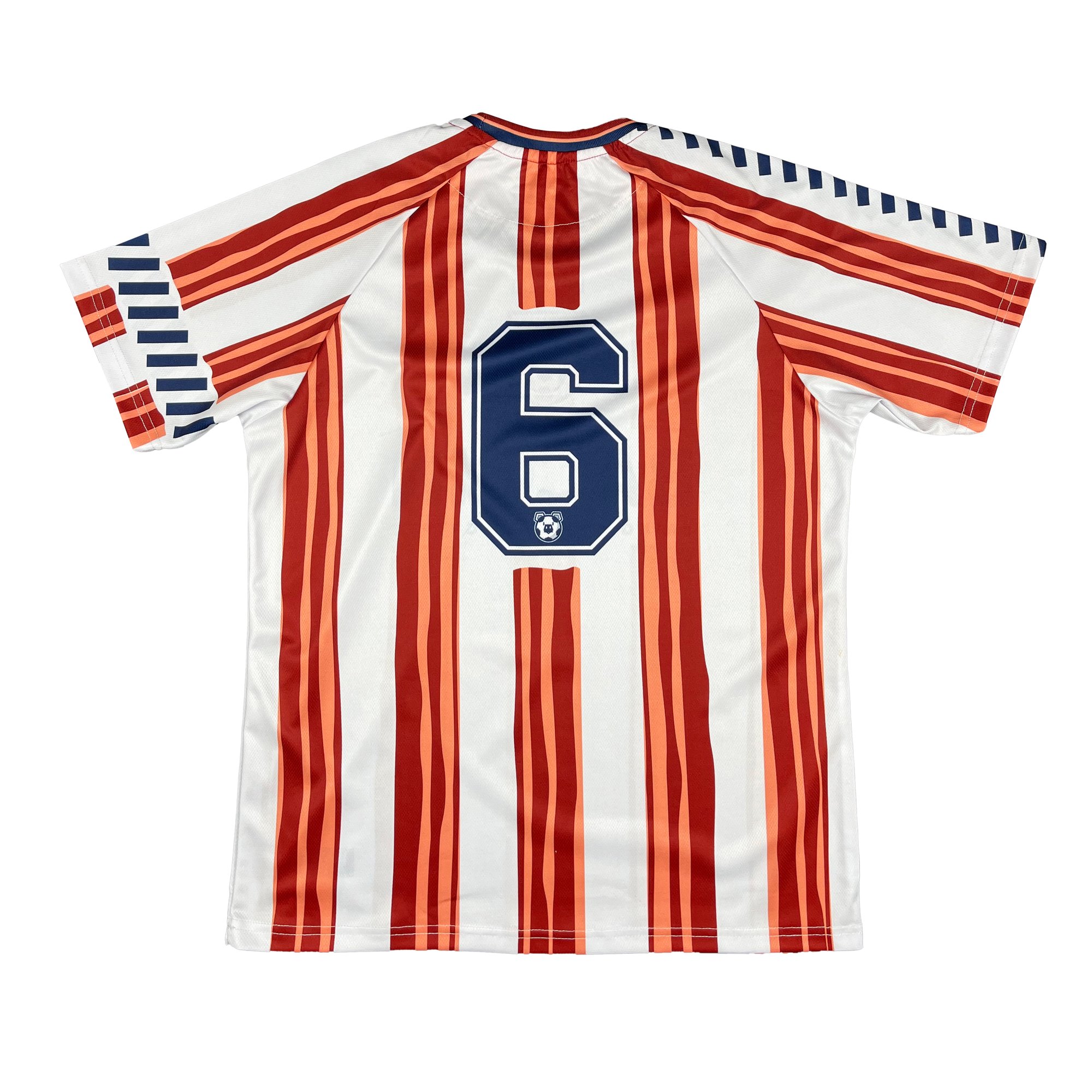 Now the boring stuff: 100% lightweight polyester sports performance football (soccer) shirt with full coverage dye-sublimation print designed in the USA and made in Asia.